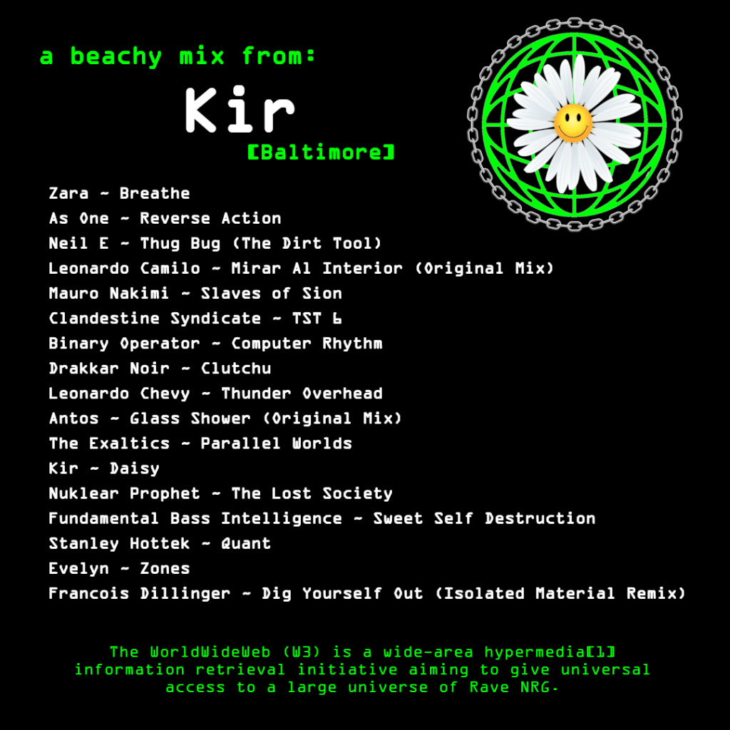 Baltimore’s Kir (@itiskir) and recent Daisychainer (#292) guests on this month’s installation of the Daisychain residency for Refuge Worldwide, playing some of their favorite minimal, electro, and shuffly cuts alongside original productions. It’s a dream cloud floating through the textures both smooth and softly gritty.