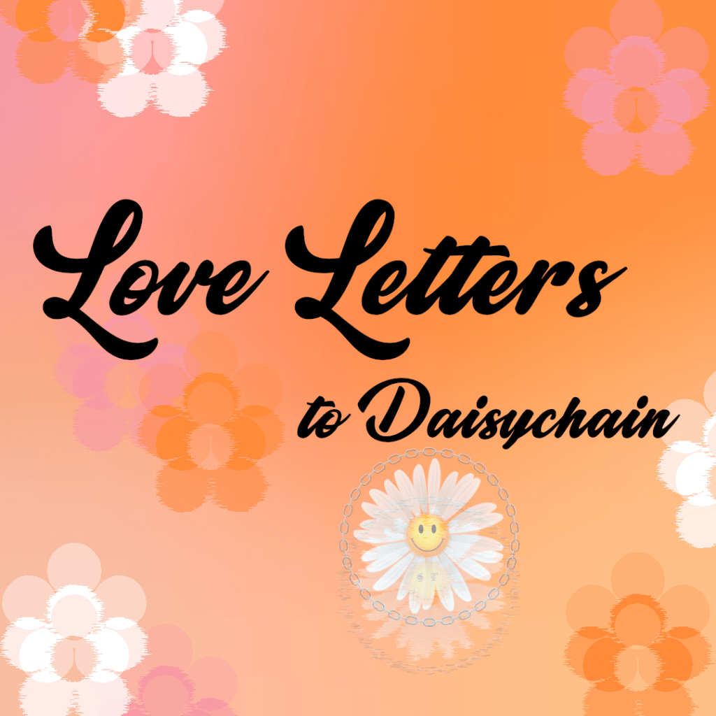 looking for love letters, words of gratitude, memory reflections. why does this series hold significance for you? has Daisychain brought something (or someone) special into your life? something you’d like to express gratitude for? was there an unforgettable moment in a mix that made you cry? if you made a Daisychain mix and it meant something to you, would you tell me why? or maybe none of these at all and you want to share something totally unique to you: the page is your oyster. share with me.